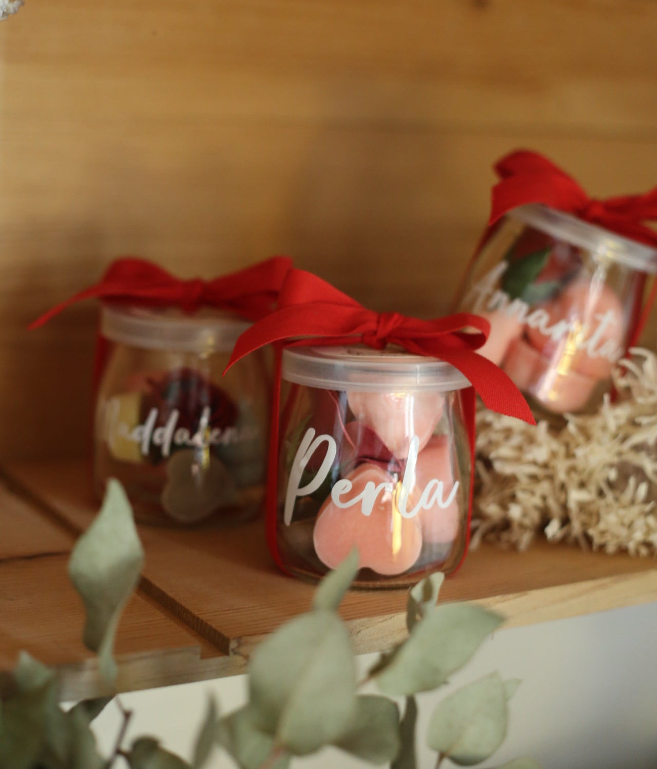 Mix di saponi da cortesia assortiti forme cuori o nuvole in barattolo in vetro da personalizzare col nome